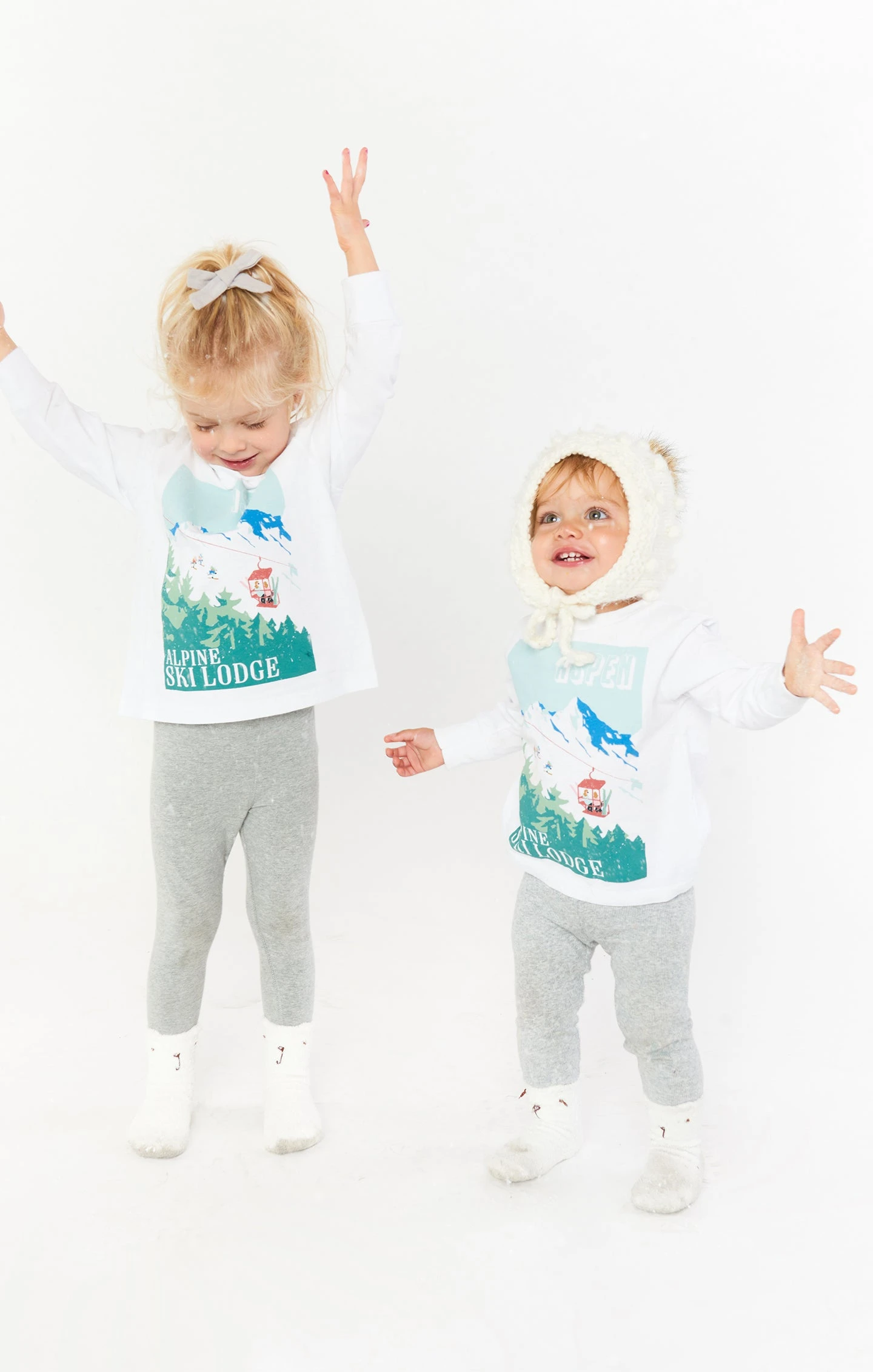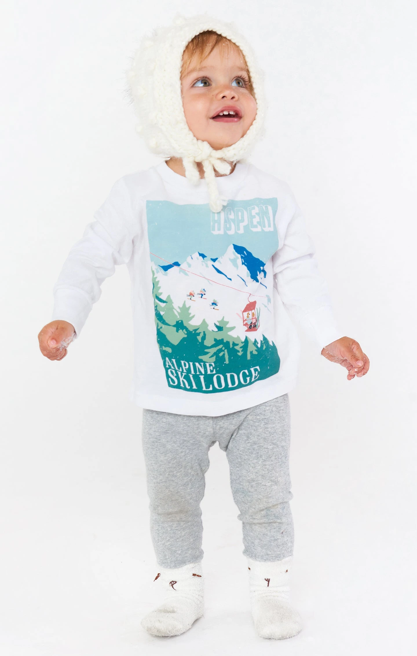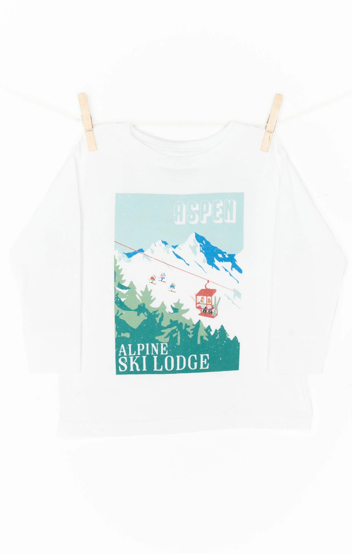 Match your mama and hit the mountains in this long sleeve tee shirt. With a scoop neck and ski lift graphic, you will be the cutest mini in the lodge.