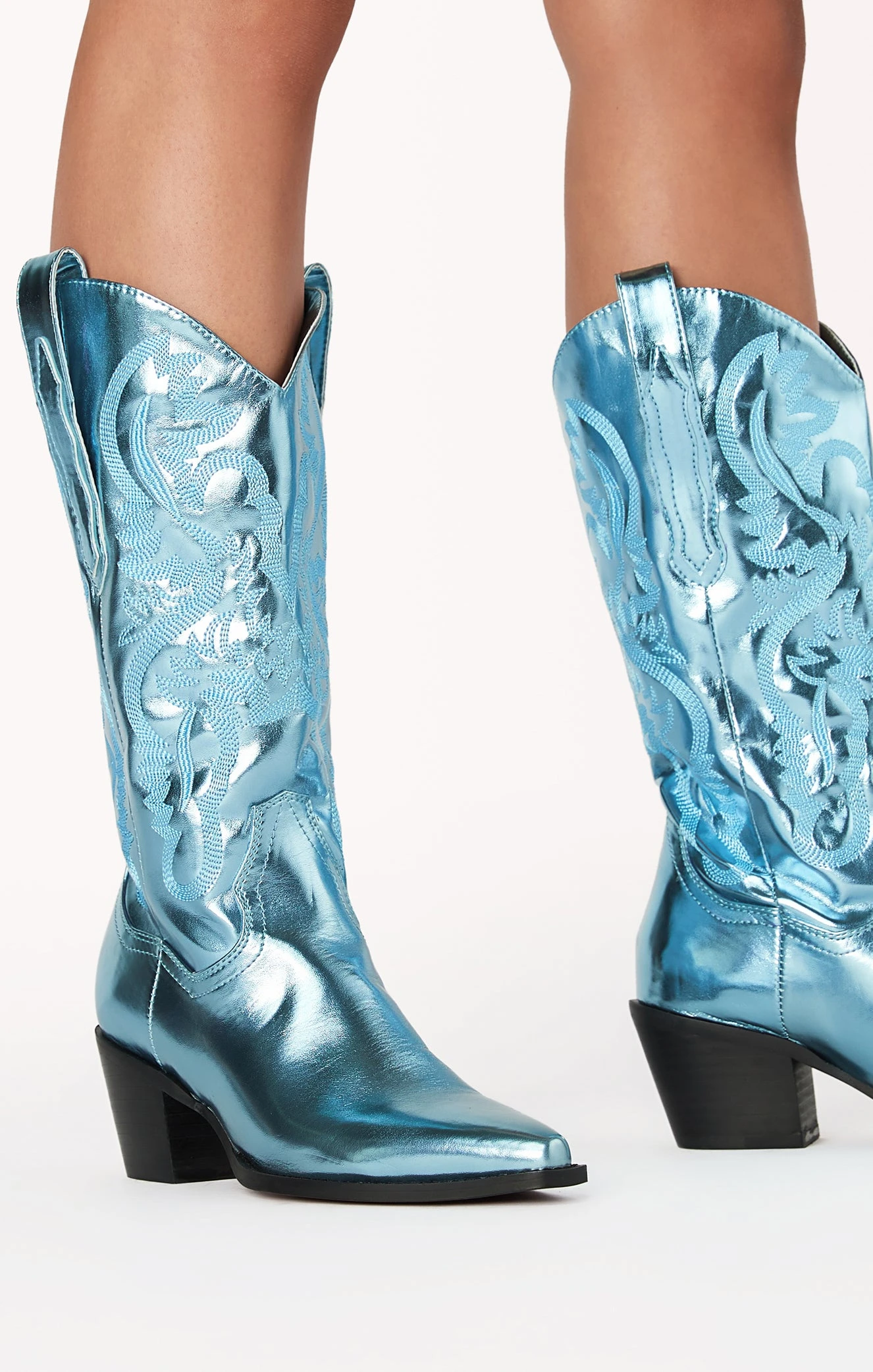 Danilo by Billini is a long western ice blue metallic boot. These boots were definitely made for walkin’! Add a touch of western inspired styling to your off-duty look with Danilo.
