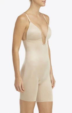 Show Me Your Mumu SPANX Suit Your Fancy Plunge Low-Back Mid-Thigh Bodysuit ~ Champagne Beige