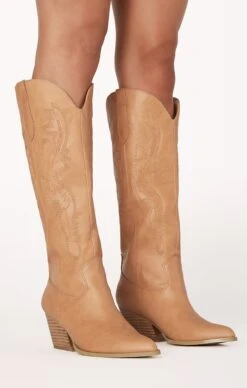 A classic take on a western style boot, Zeina comes in a neutral camel, and is finished with tonal embroidered stitching, for an overall understated yet chic look.