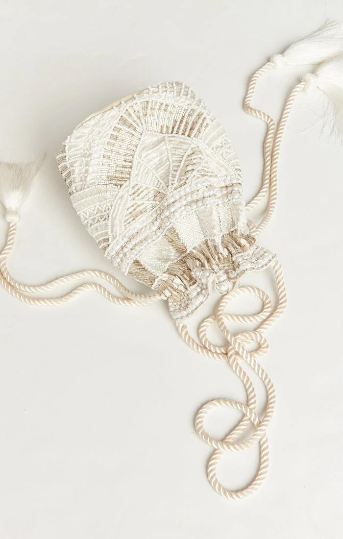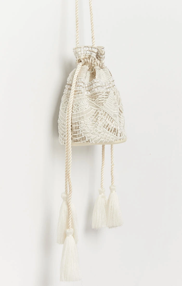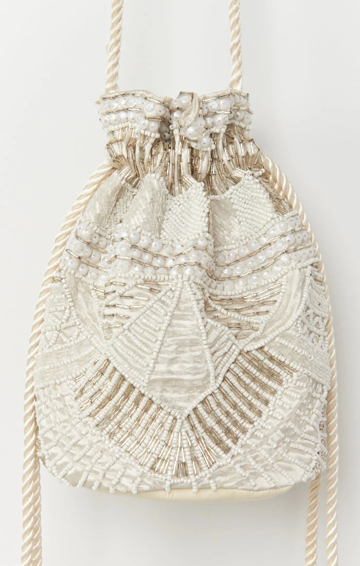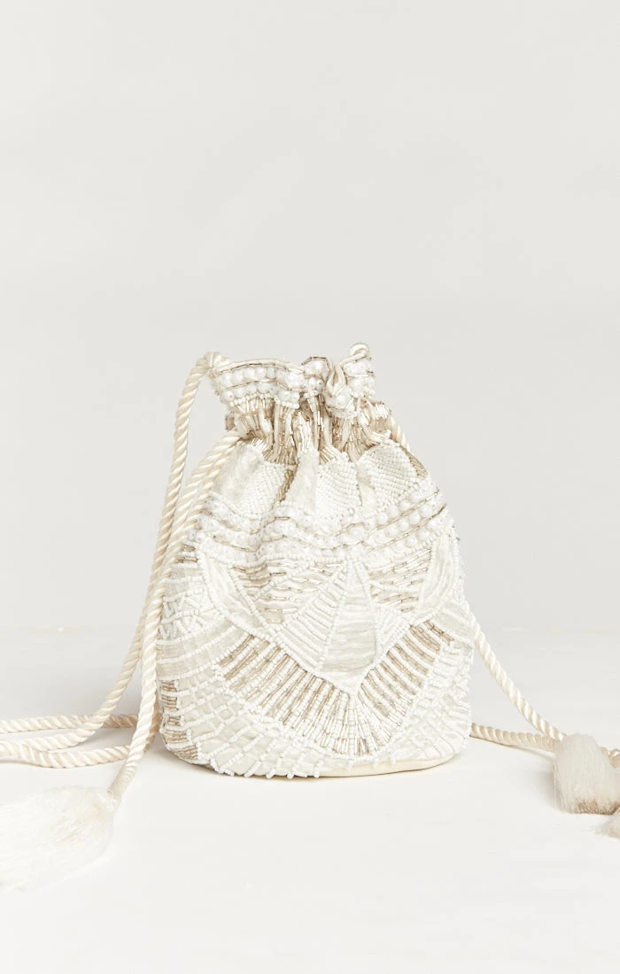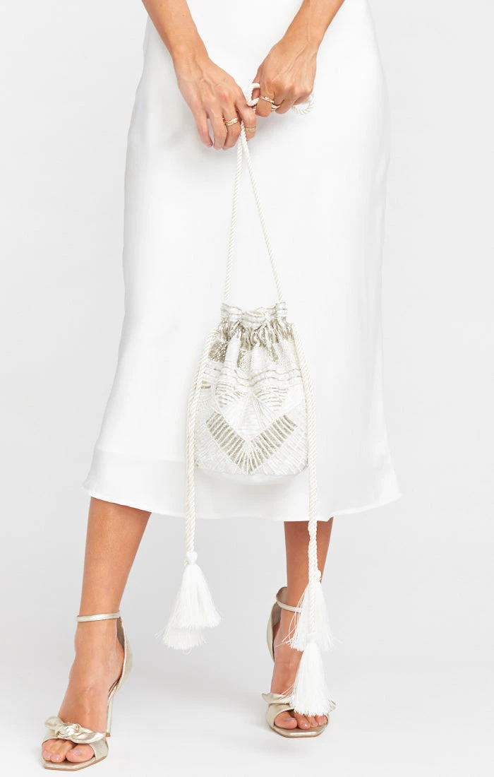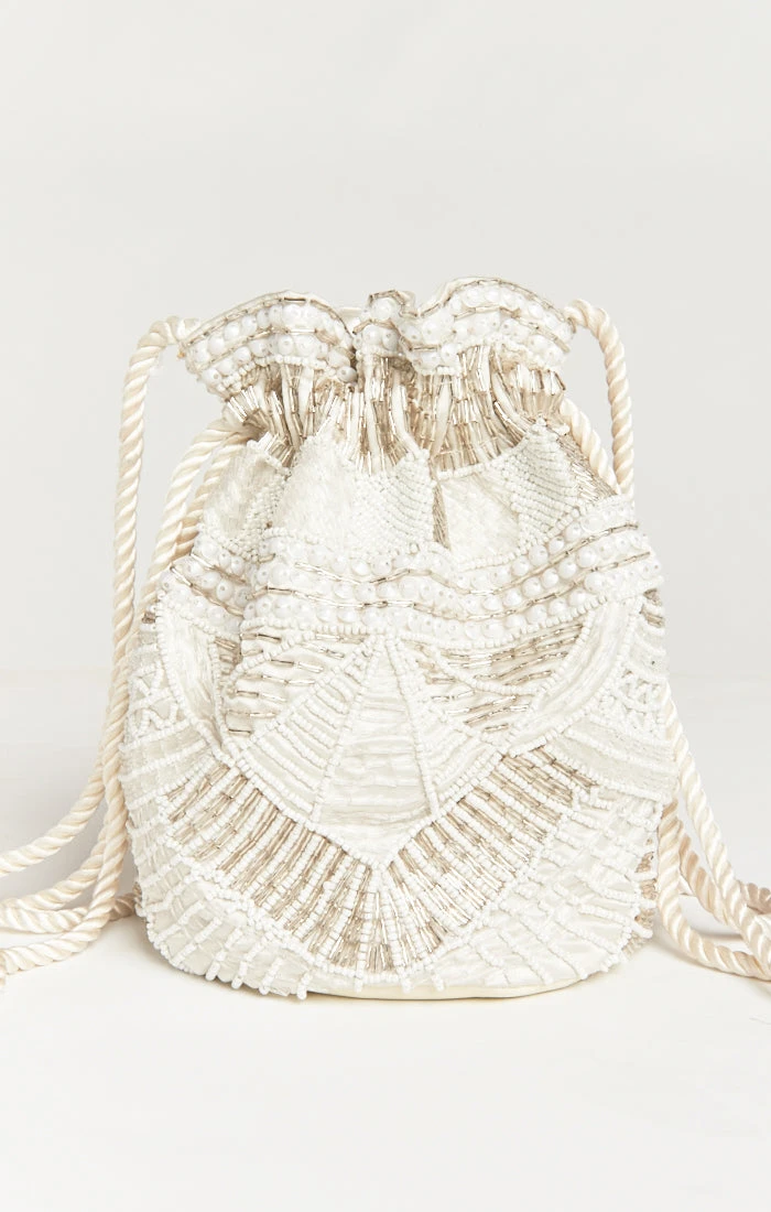 Show Me Your Mumu Cleobella X Mumu Penelope Beaded Bucket Bag ~ White