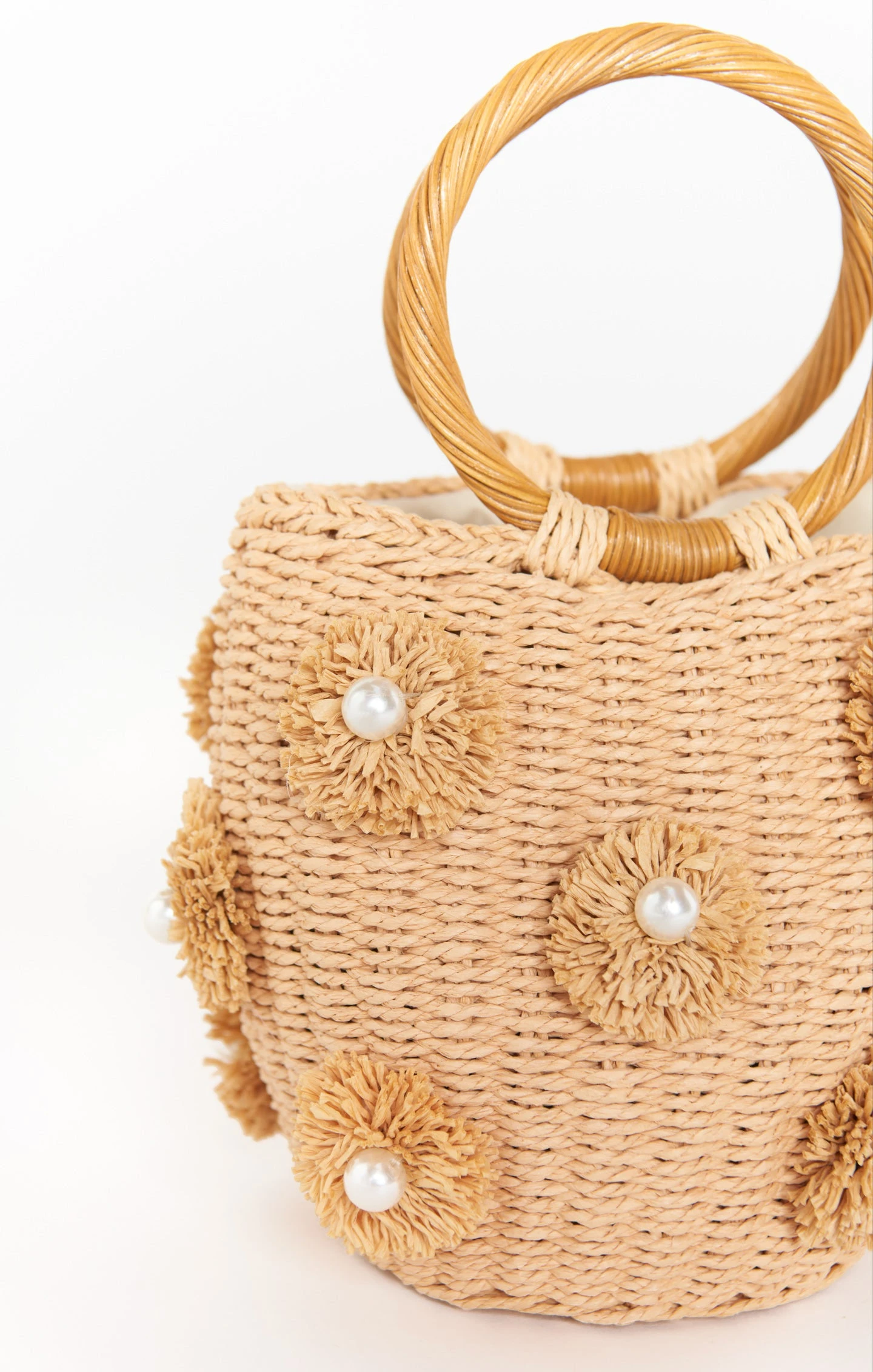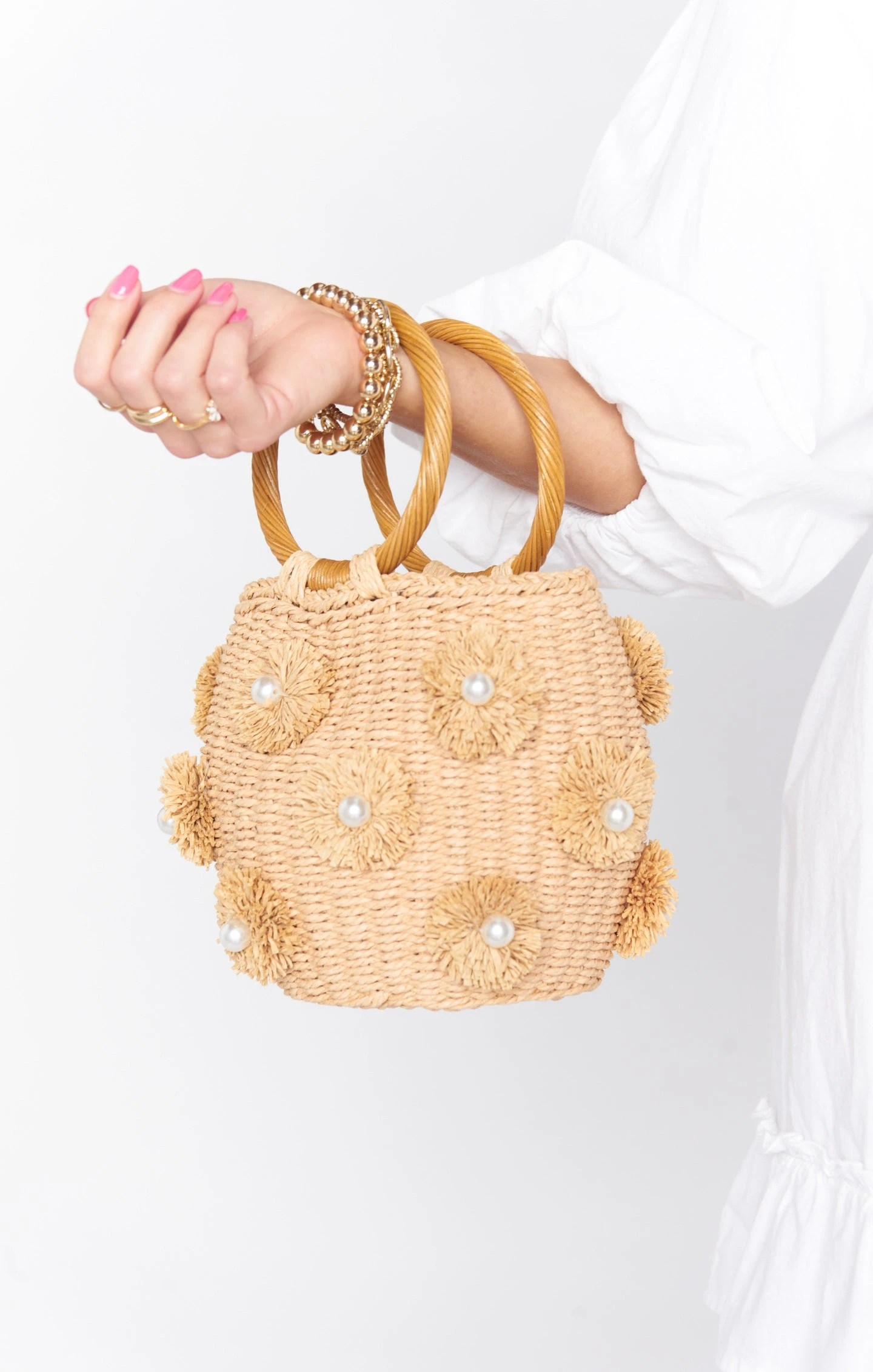 We are crazy about this gorgeous straw bag featuring beautiful raffia, pearl details & a circle handle. Take her anywhere, she’s perfect for all occasions.