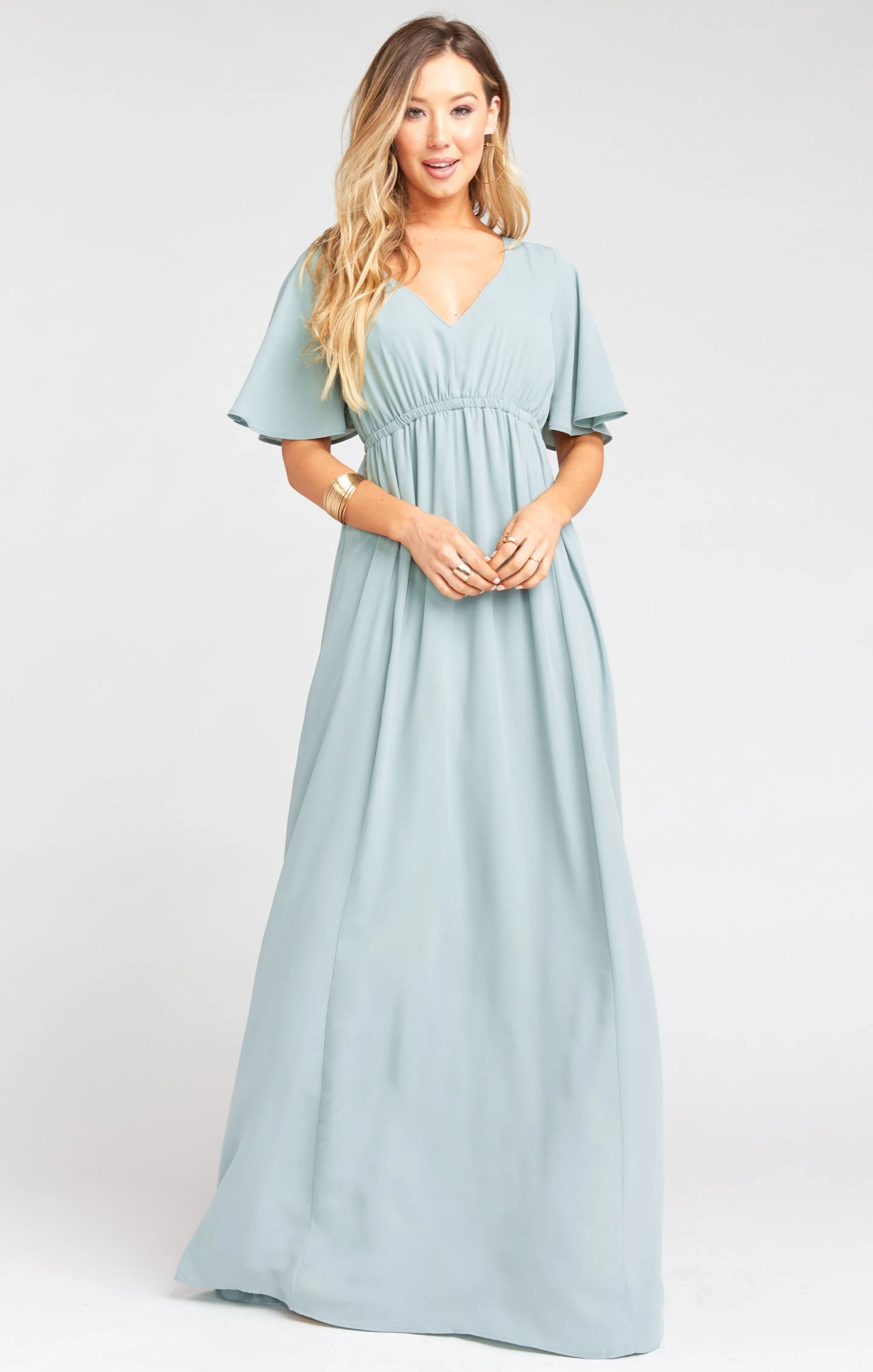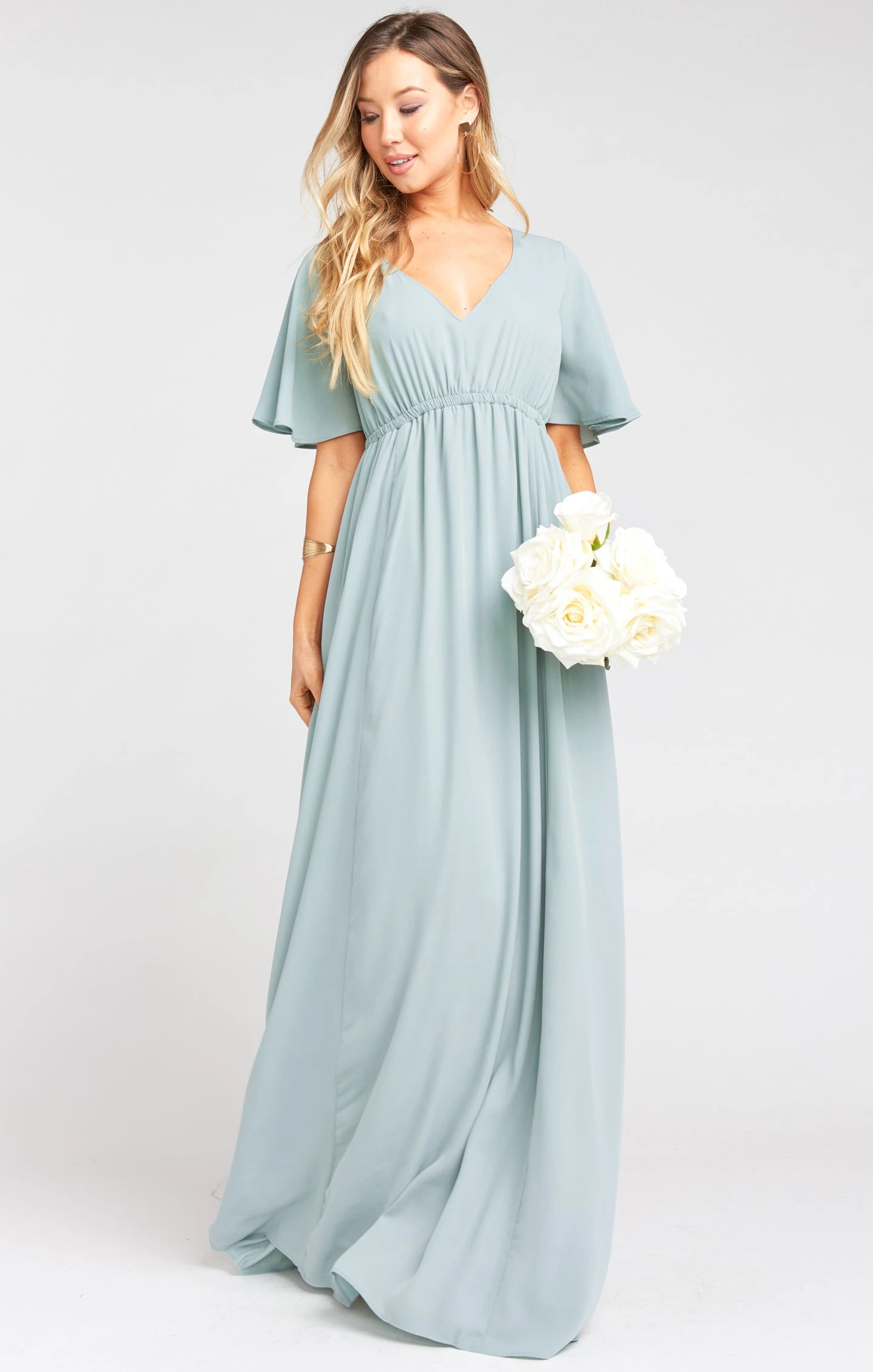 SKU: C2HVD 1766875430955 Categories: Dresses + Rompers, Maternity Tags: Augsale2023, Bridesmaid, Bucket:Silver Sage, Chiffon_crisp, Child:Silver Sage Crisp, Cybersale2022, Division:bridal, Entity_id:50351, Final_sale, In_sale_section, Keepwhenoos, Length:maxi, Neckline:v neck, Oos_available, PA-MCA, Parent:emily-empire-maxi-dress, Plusbadge, Season:19SP, Showroom, Sleeve:flutter, Sleeve:short sleeve, Ss-keep, Style:bra friendly, Style:empire, Style:flowy, Style:maternity friendly, Summer sale 2022, Type:bridesmaid dresses, Type:dresses & rompers, Type:maternity friendly, YGroup_emily-empire-maxi-dress