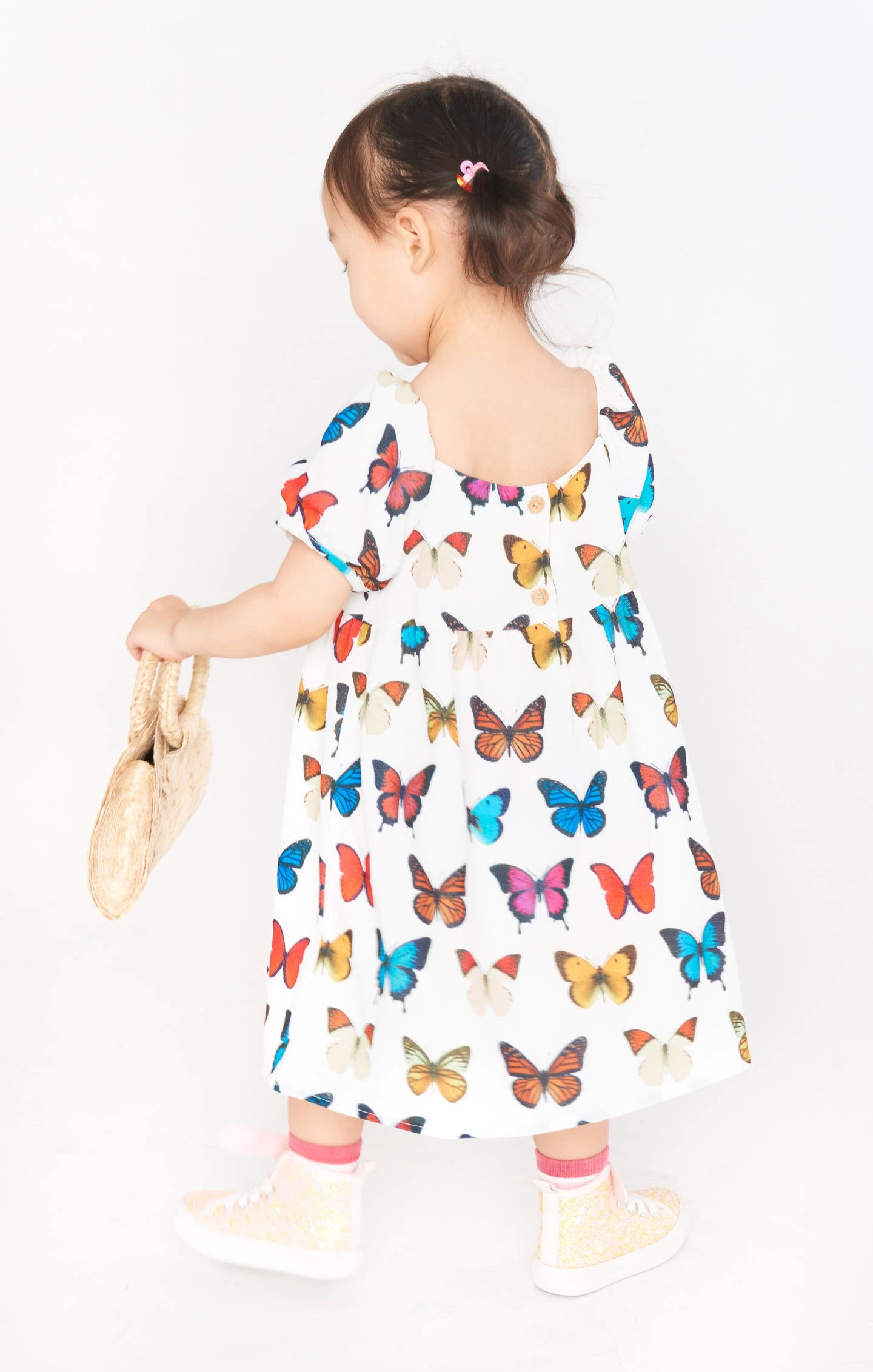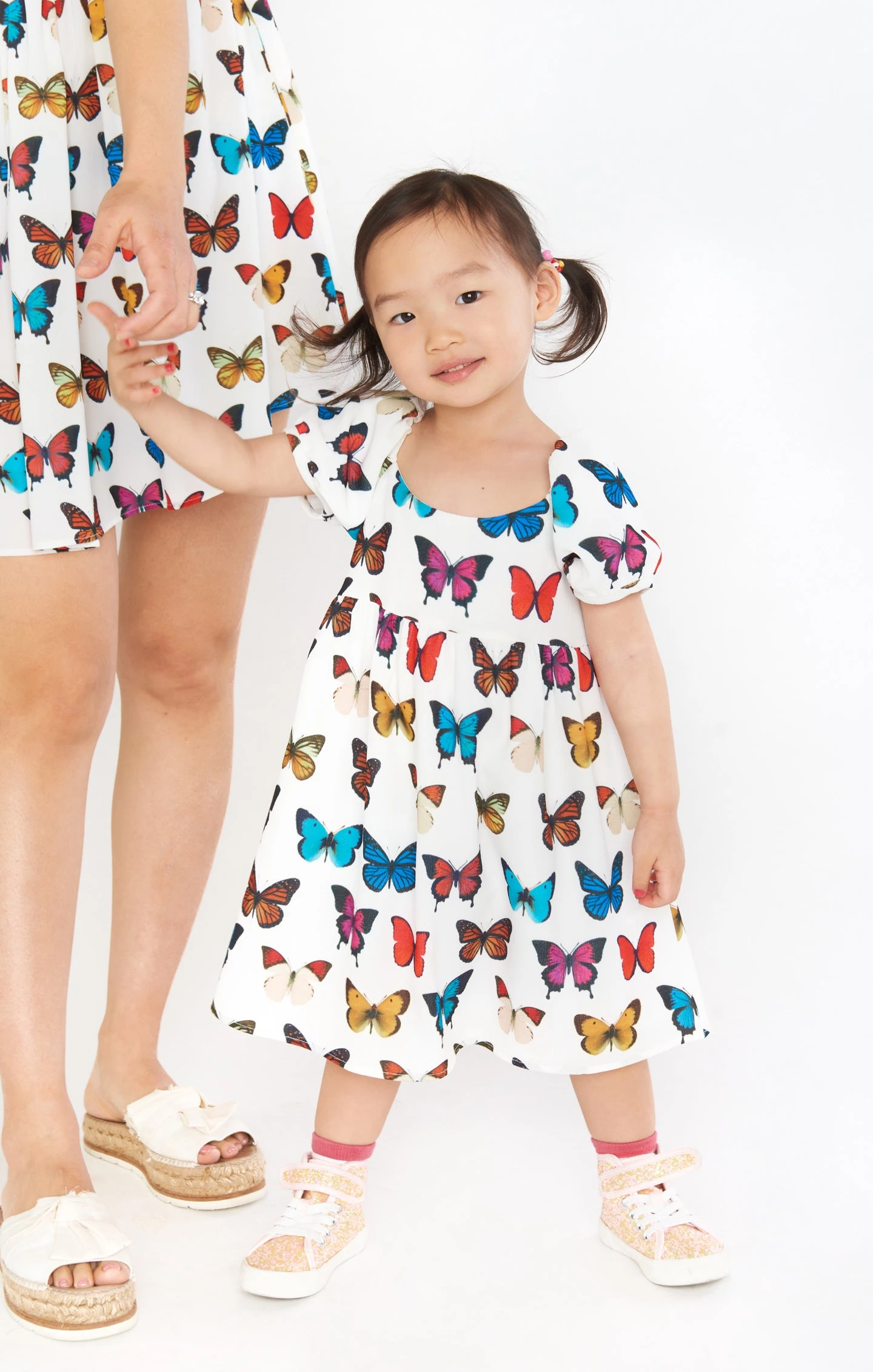 The most precious dress for your mini me! This sweet lil puff sleeved butterfly dress is great for your family photos or tagging along to a special event!