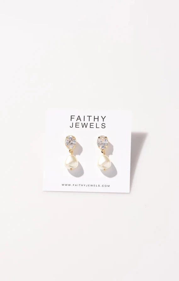 Show Me Your Mumu Faithy Jewels Kara Drop Earrings ~ Pearl/CZ