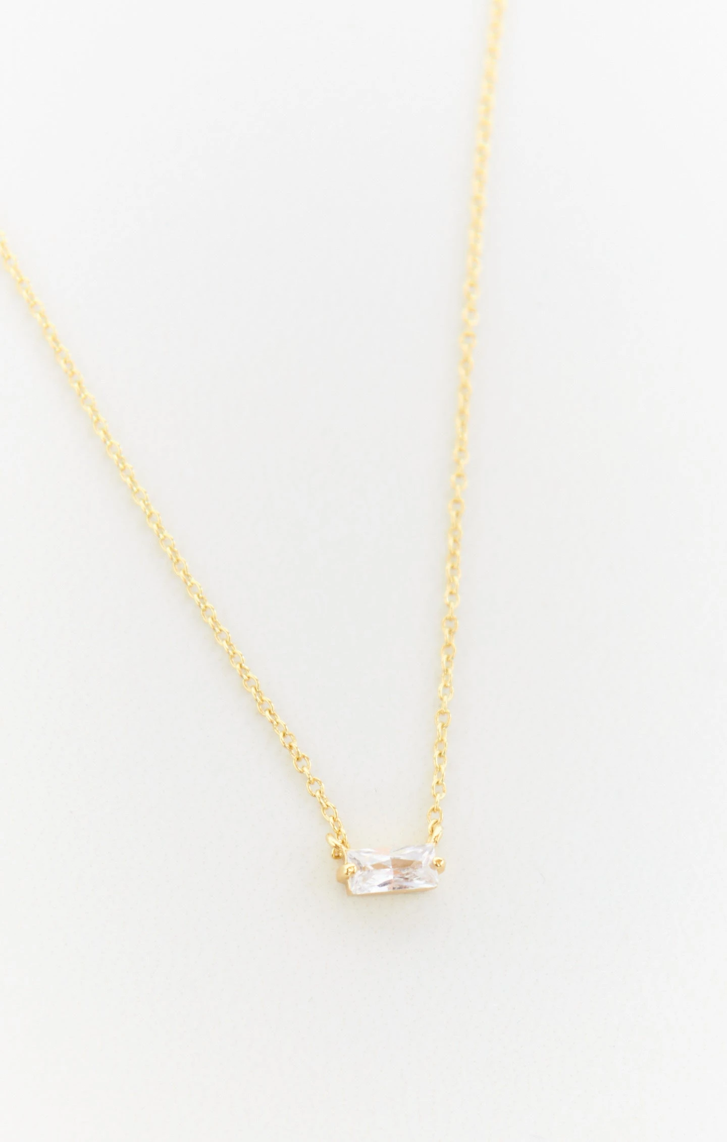 A solitaire baguette-cut cubic zirconia charm gleams at the center of this delicate necklace.