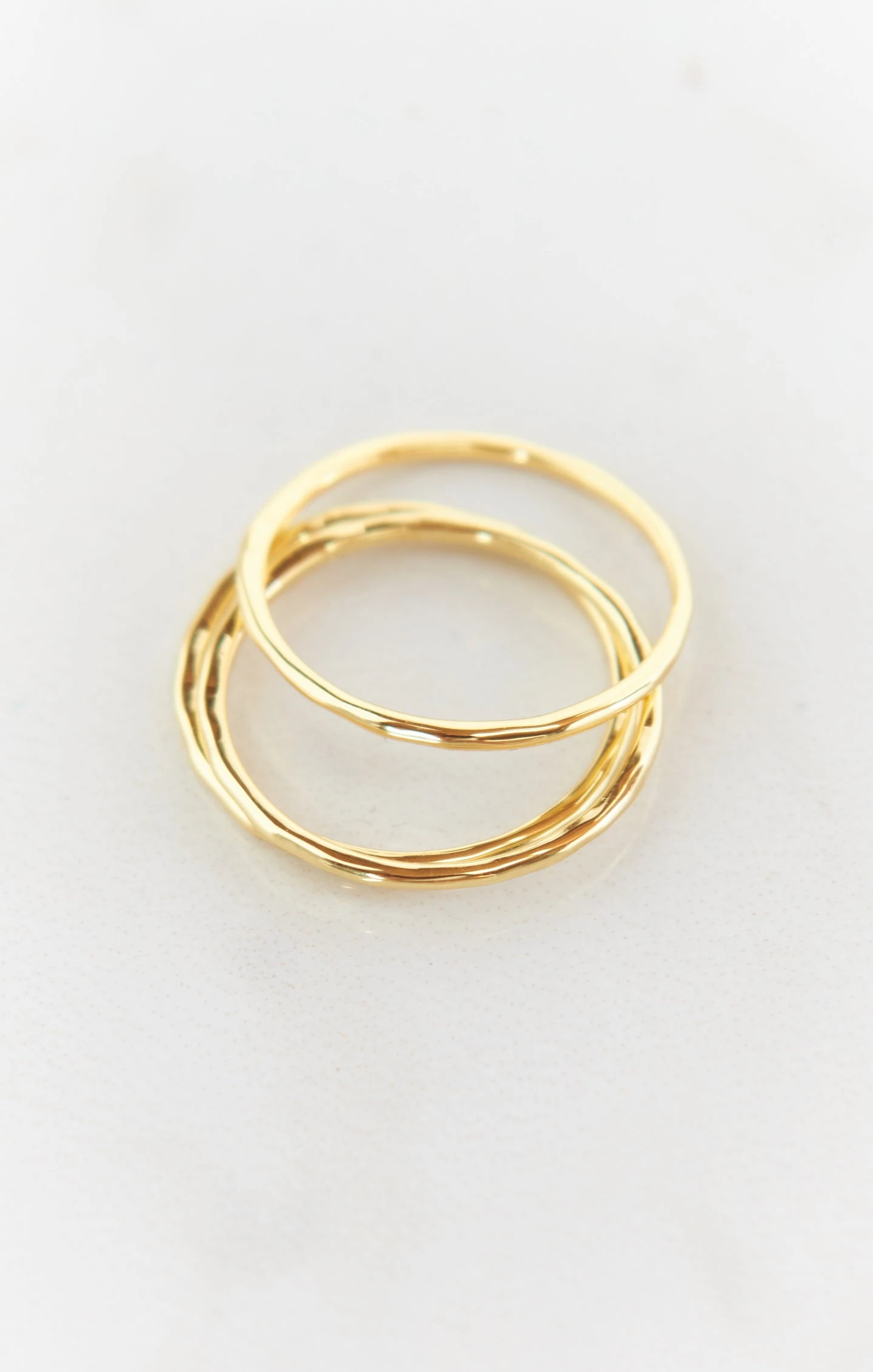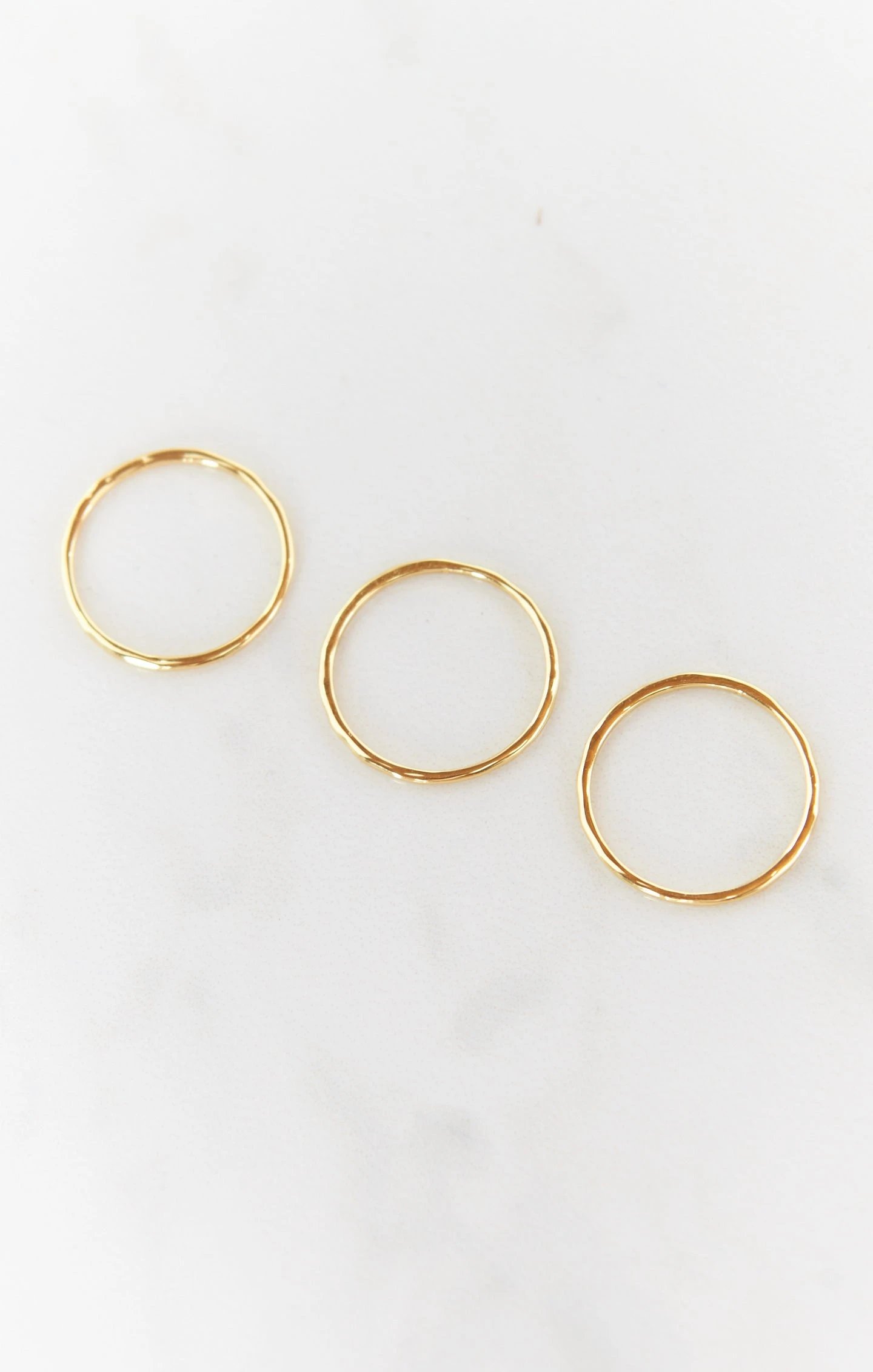This set of gleaming, delicately hammered rings offer a versatile style. Stack them for a statement-making look or wear individually for a touch of understated elegance.