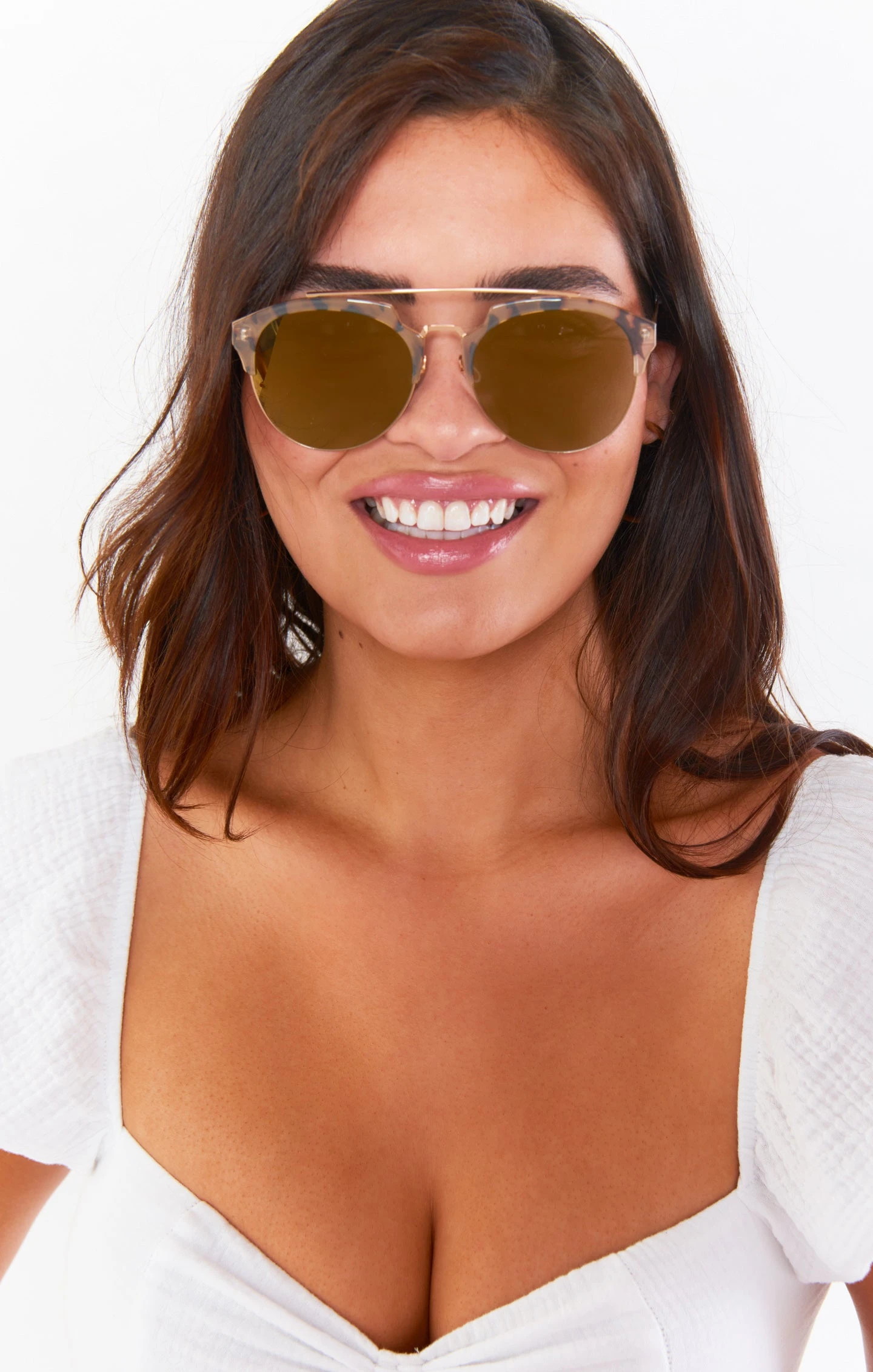 Harlow are the perfect everyday shades for Summer! With their flattering aviator shape and unique tortoise print frames, these babies will go with everything!