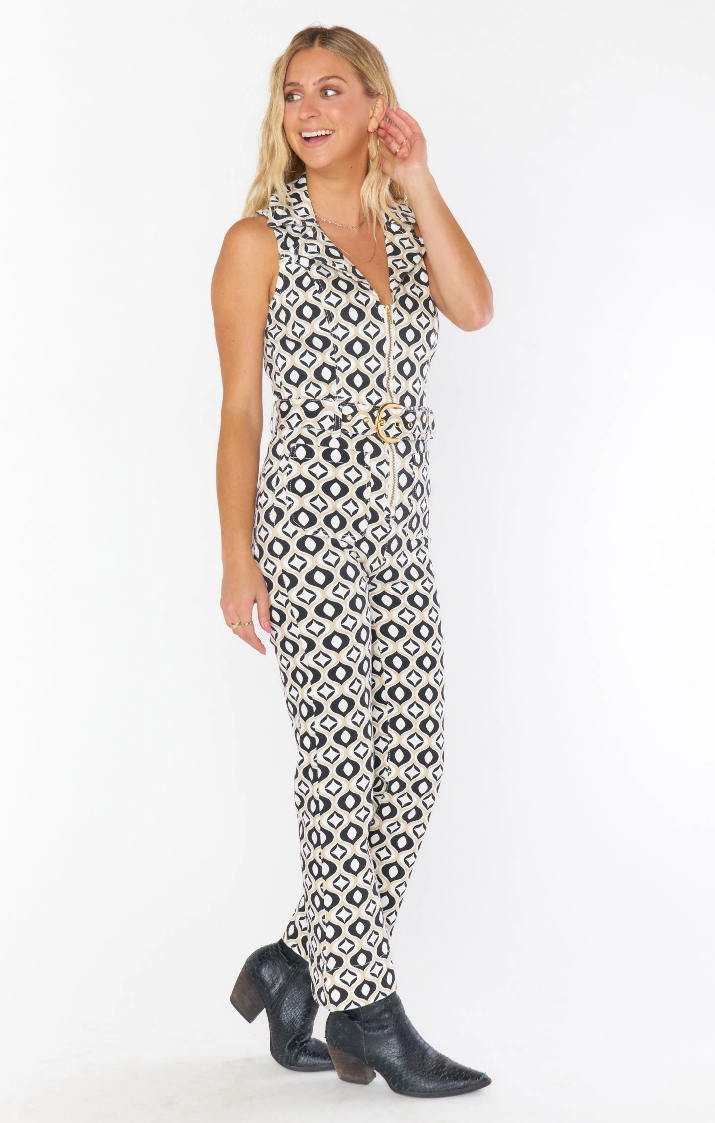 Show Me Your Mumu Jacksonville Cropped Jumpsuit ~ Neutral Geo Denim