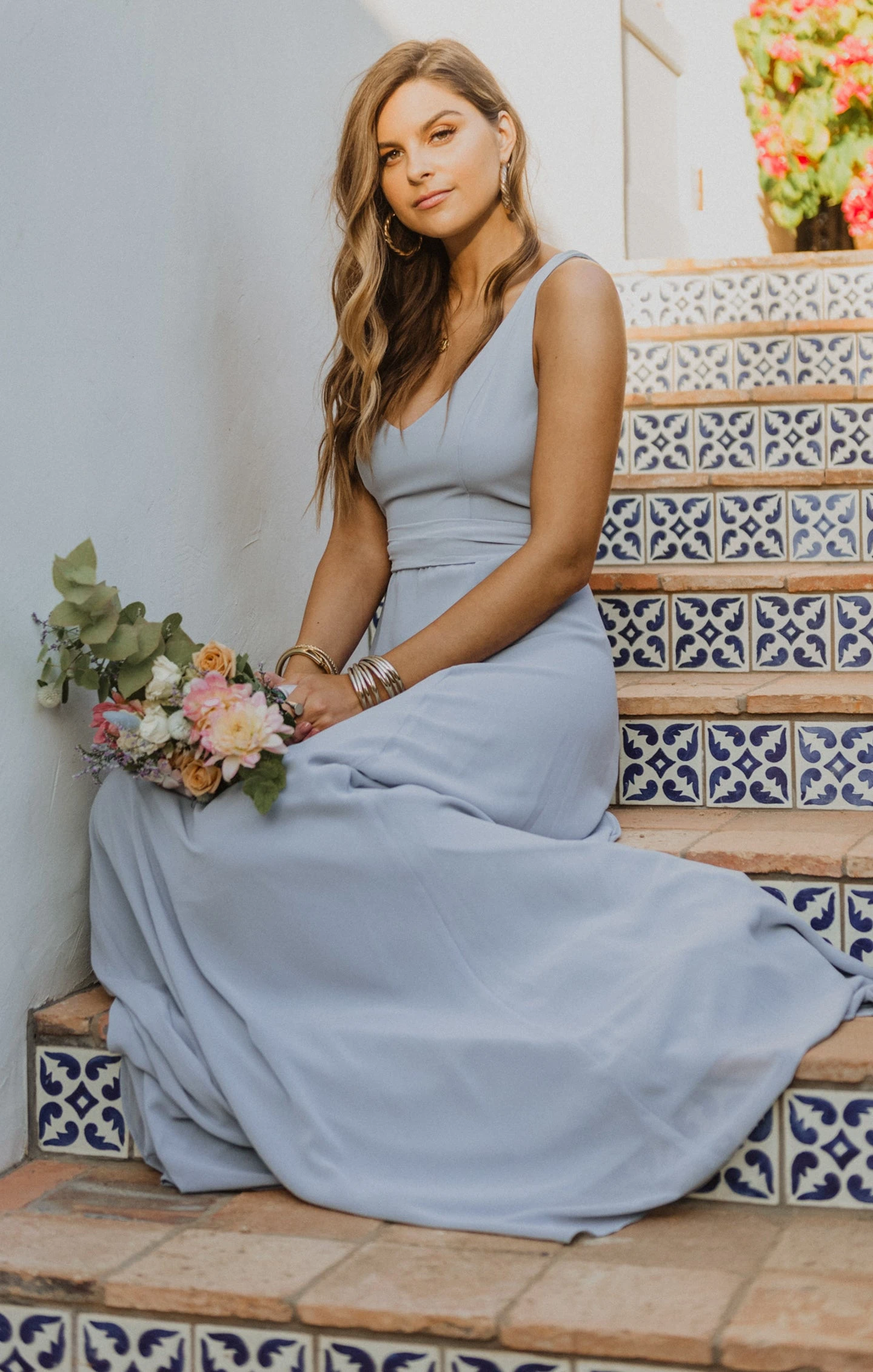 SKU: C2HVD 1711689302059 Categories: Dresses + Rompers, Wedding Guest Dresses Tags: Augsale2023, Bridesmaid, Bucket:Steel Blue, Chiffon_crisp, Child:Steel Blue Chiffon, Division:bridal, Entity_id:23655, Final_sale, For-the-guest, In_sale_section, Length:maxi, Neckline:v neck, PA-MCA, Parent:jenn-maxi-dress, Season:16FA, Showroom, Sleeve:sleeveless, Ss-keep, Style:a line, Style:fitted, Style:flowy, Style:mermaid, Type:bridesmaid dresses, Type:dresses & rompers, YGroup_jenn-maxi-dress