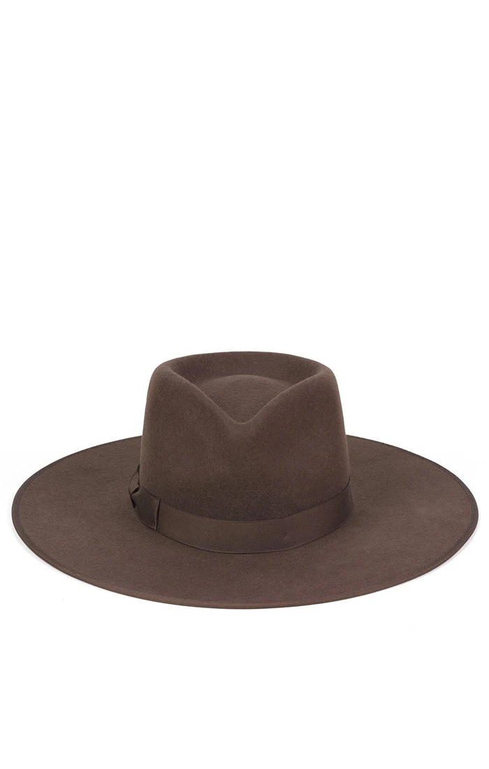 This hat is designed to make a statement! A stiffened wool fedora with rigid crown design. Trimmed on hat and rim with tonal gross grain ribbon.Â