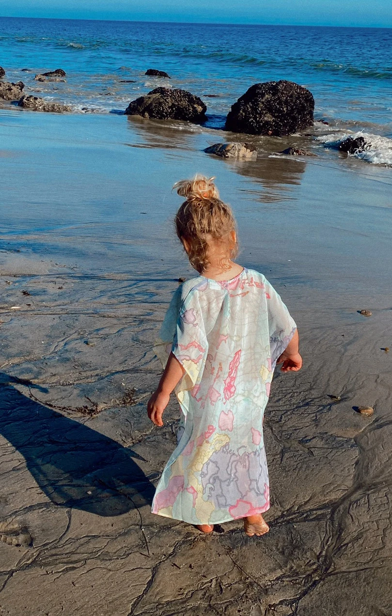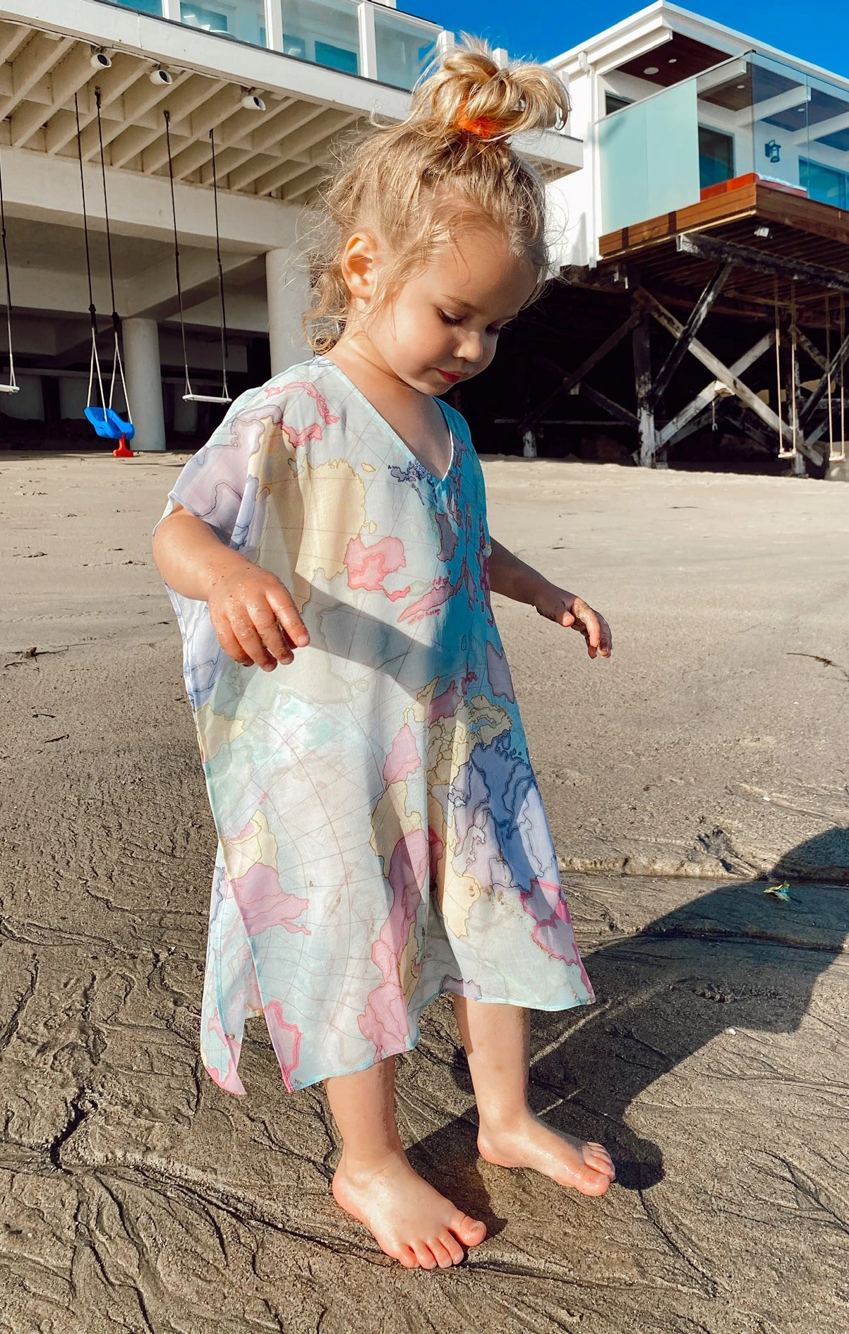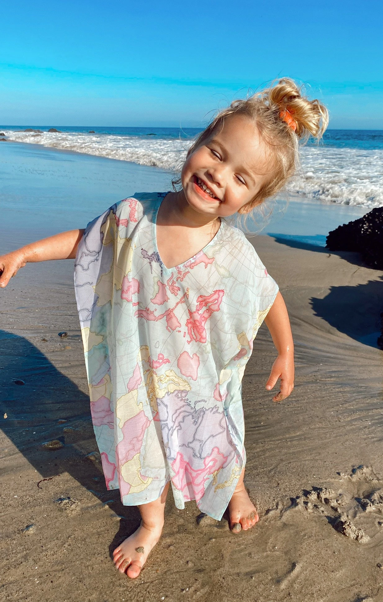 Just like the Hana Trumu we all know and love, but now for your mini me! This little lightweight maxi is an easy throw on for the beach or poolside. You can finally match your little boho babe with this map print caftan!