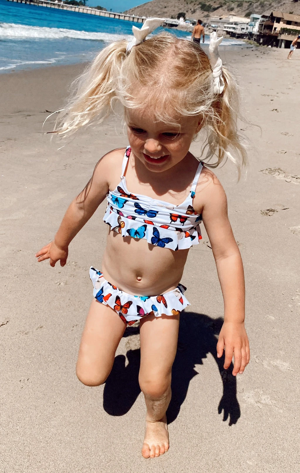 The cutest ruffled two piece for your little mini me! Match perfectly with your baby in this butterfly bikini.