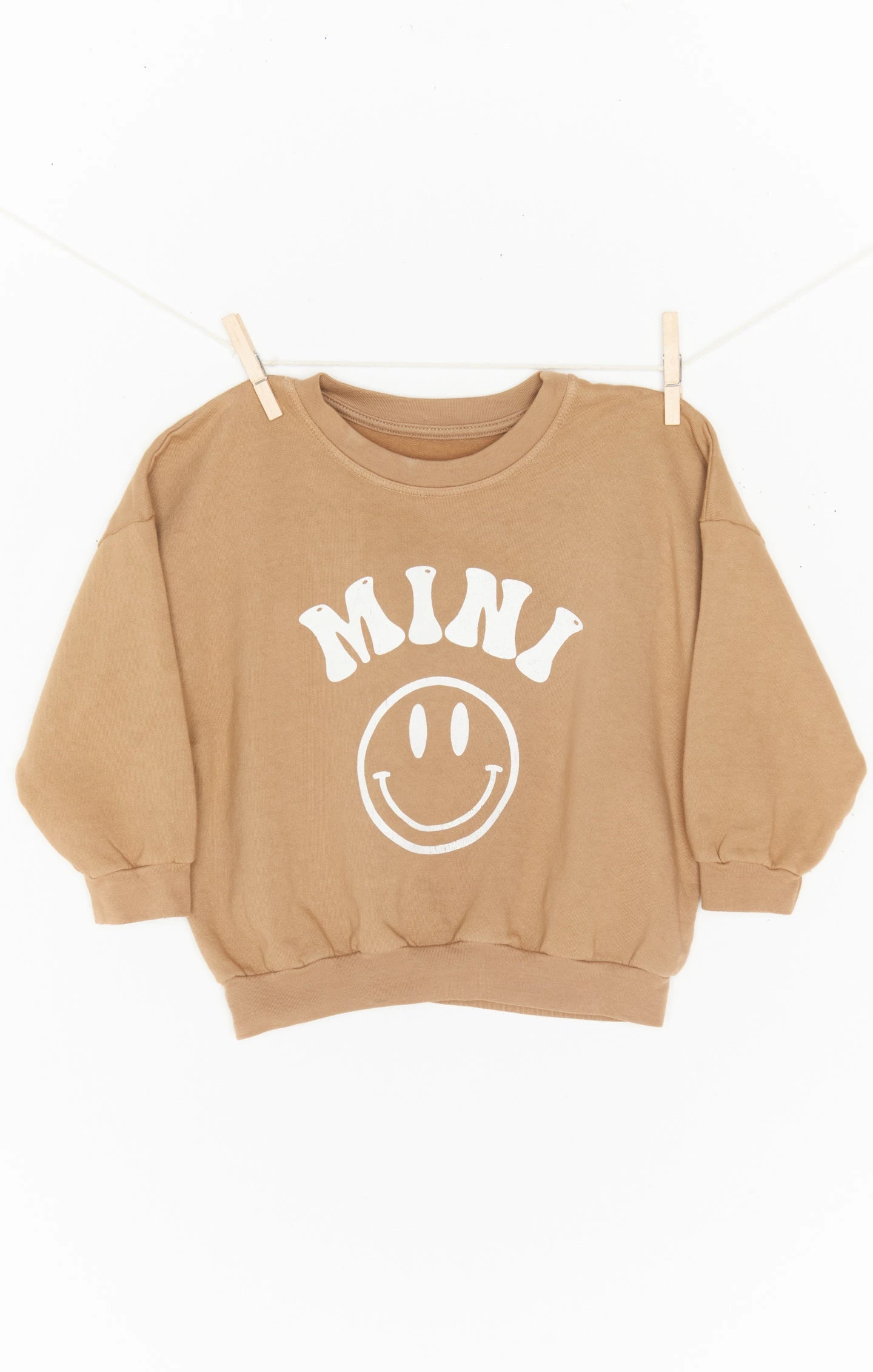 Smiling with mom just got so much cuter! This perfectly positive oversized mini crew neck sweatshirt will have you all matching in style.