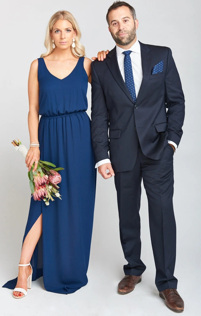 This print was created to compliment our Rich Navy dresses, due to the varying fabrics, there may be slight shading discrepancies between the ties and dresses