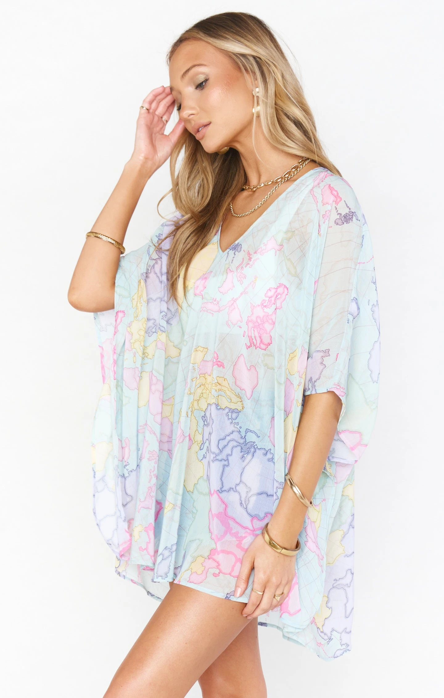 Peta is a Mu classic! This style has been around since the beginning and is a crowd favorite. This map print tunic can be thrown over a bikini, but can also be worn with little shorts, leggings, or jeans. Oversized and unbelievably comfy, but so flattering and glamorous all at the same time.