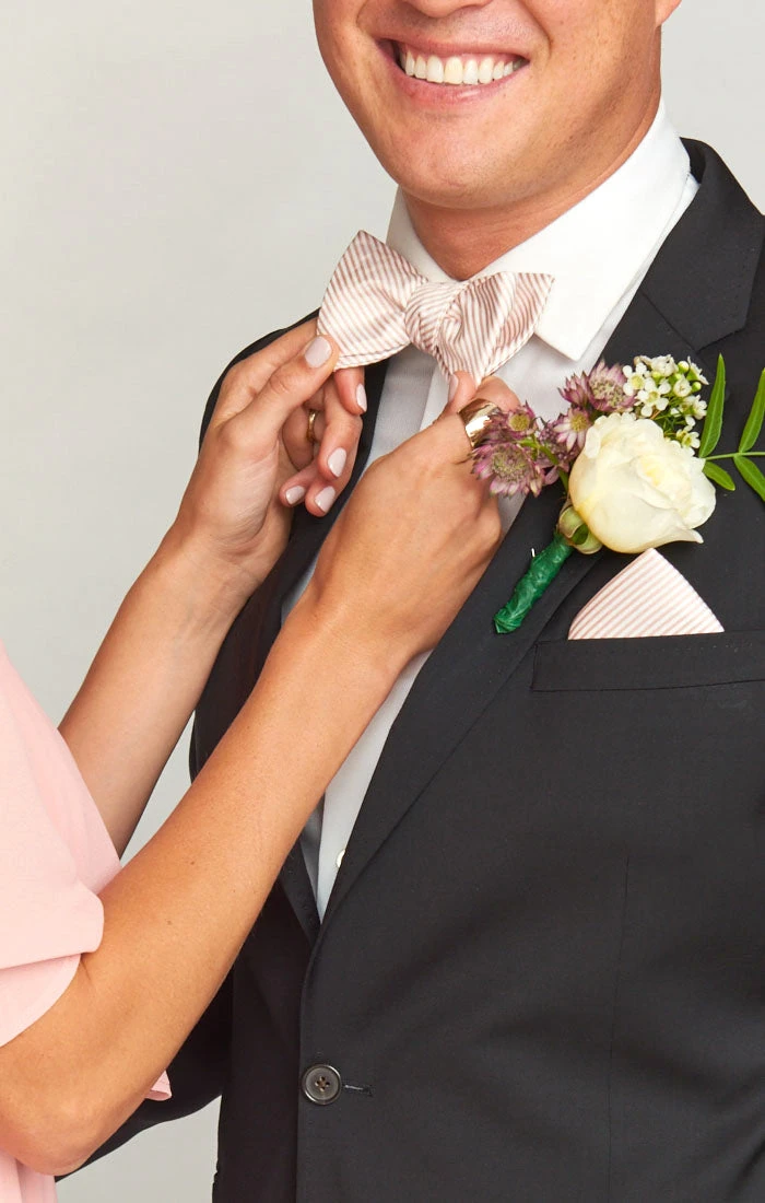 This print was created to compliment our Dusty Blush dresses, due to the varying fabrics, there may be slight shading discrepancies between the ties and dresses