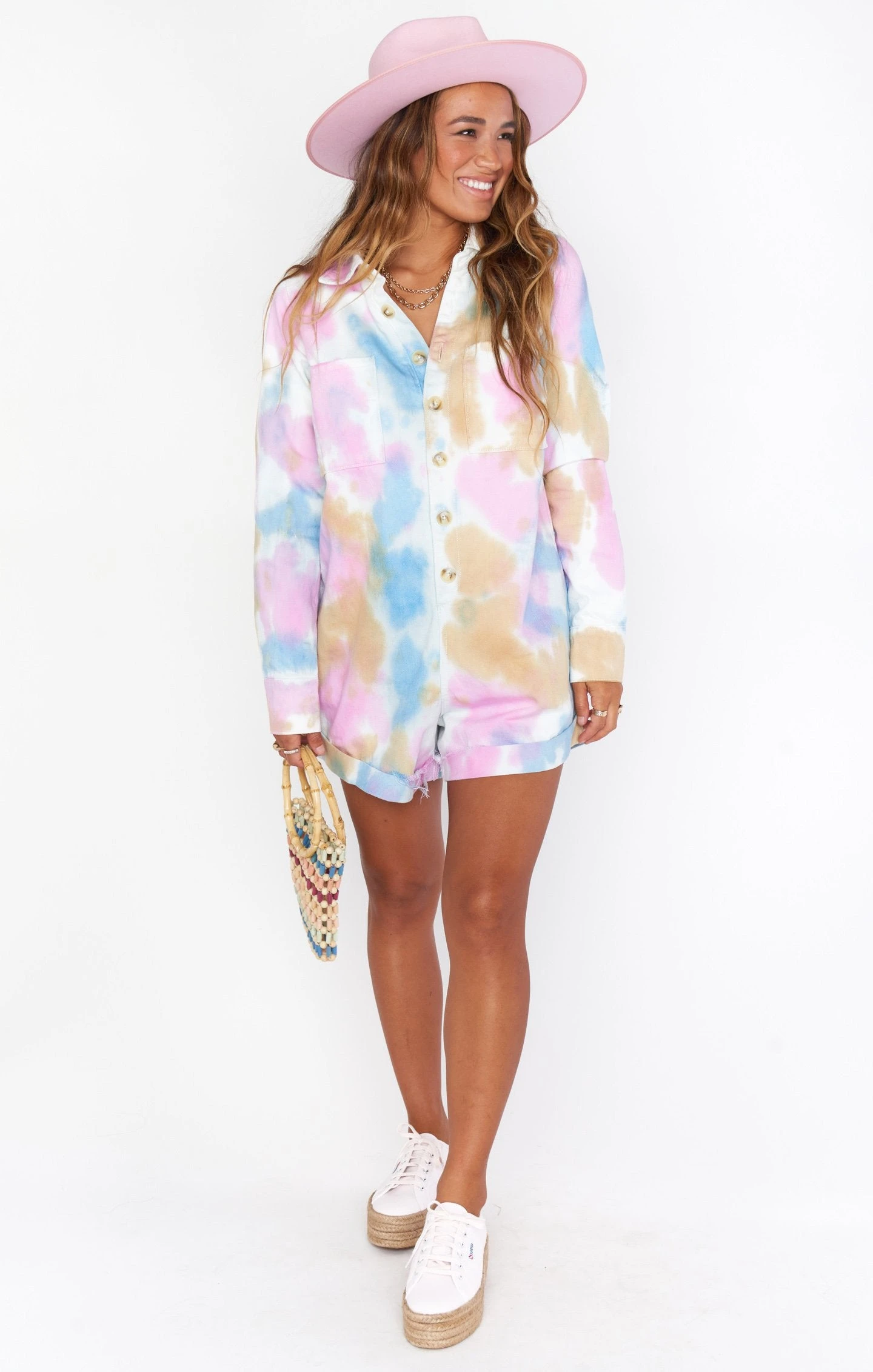 The Tegan is a one-and-done pastel tie-dye denim romper that is effortless and easy to throw on. These are hand dyed, so please keep in mind that your piece will look similar but not exact – it is as unique as you are! You’re able to roll up her shorts or not! Pair her with a belt and bucket hat for the perfect weekend outfit.