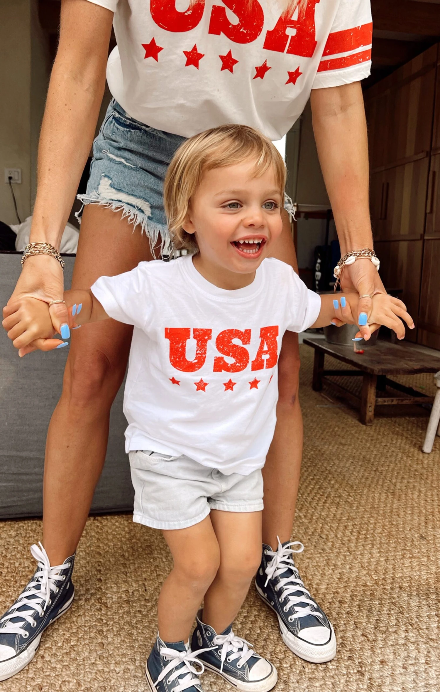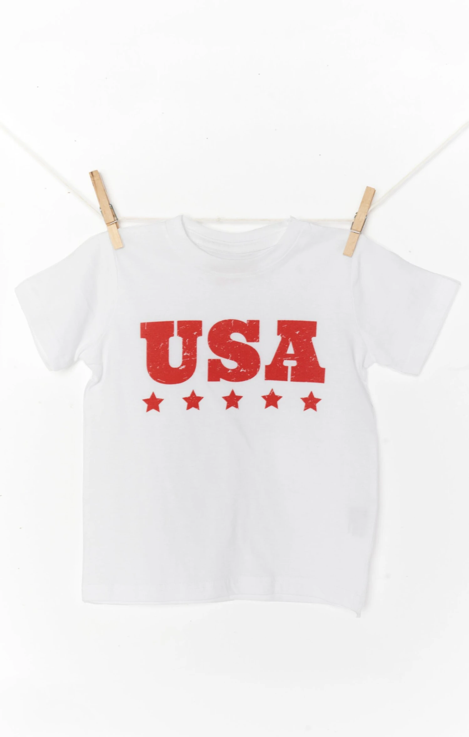 The perfect long weekend tee for your little one! The Wolfie Tee has a scoop neck and USA graphic. Pair this tee with the adult matching Airport Tee and your match your mama game will be love-love every time!